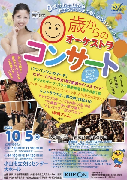 地元・小山市にて、0歳からのオーケストラコンサートにゲスト出演いたします。